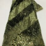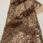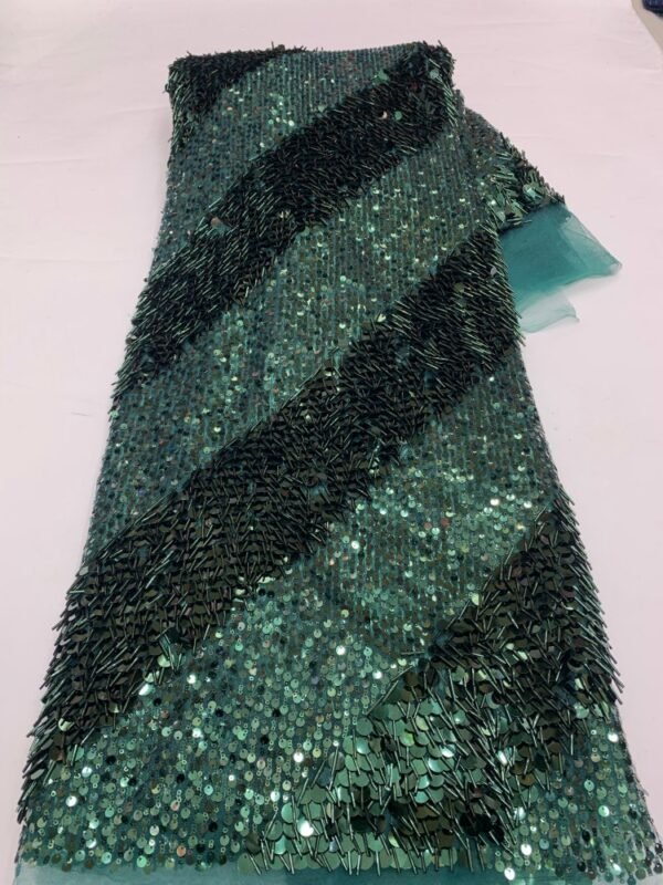 Stylish mint green mesh fabric covered with oversized sequins, ideal for luxury gowns, dresses, and event decorations.