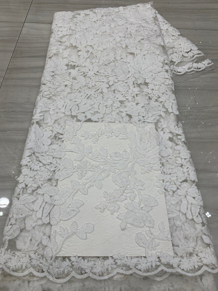 2025 Flat Sequin White Lace Fabric Bridal Lace Fabric swiss Lace Fabric S4028