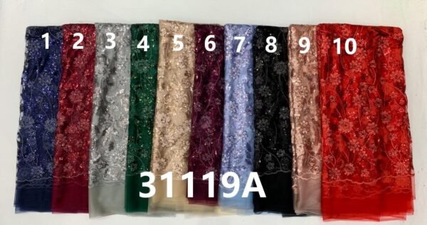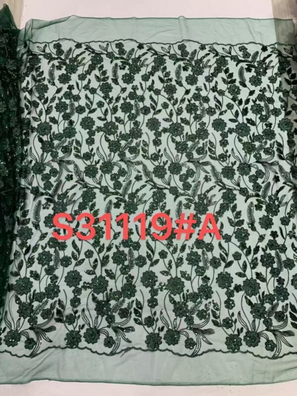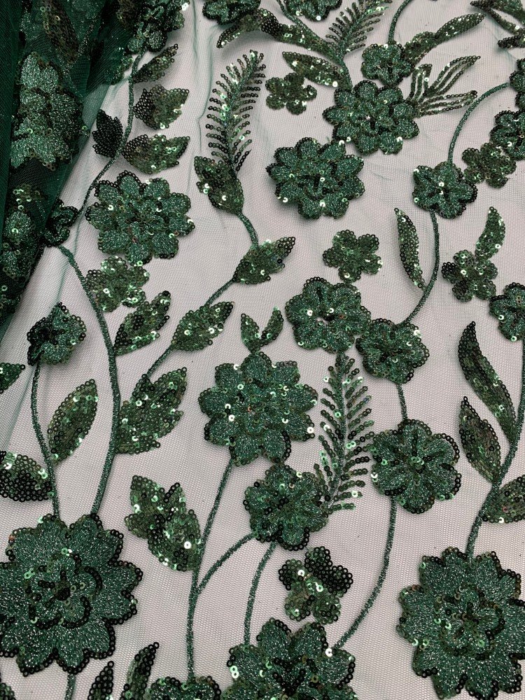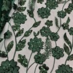 Stylish mint green mesh fabric covered with oversized sequins, ideal for luxury gowns, dresses, and event decorations.