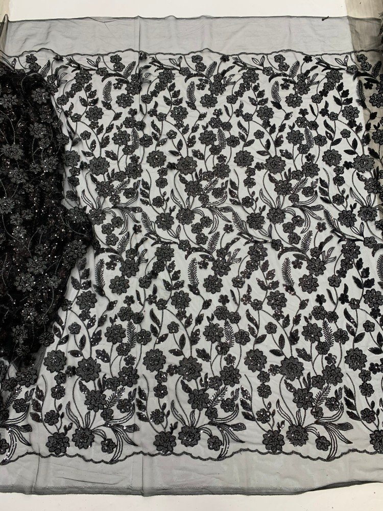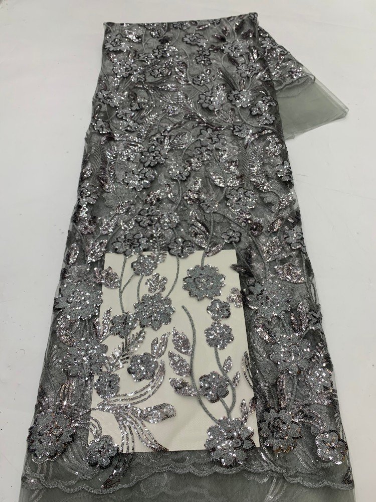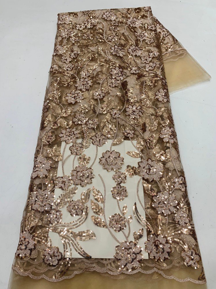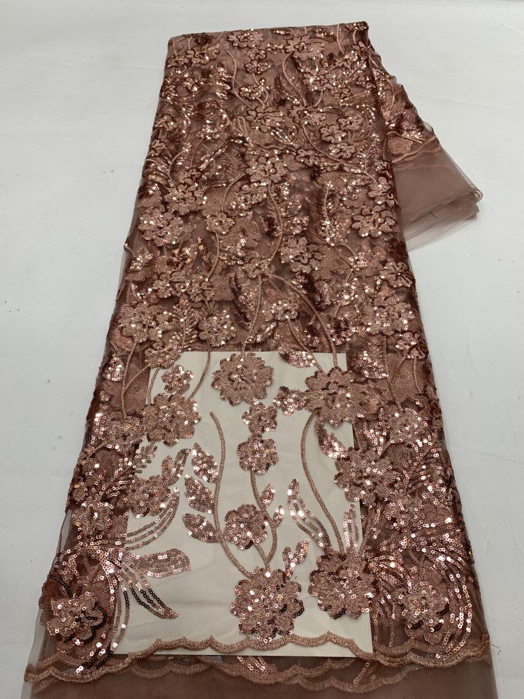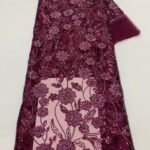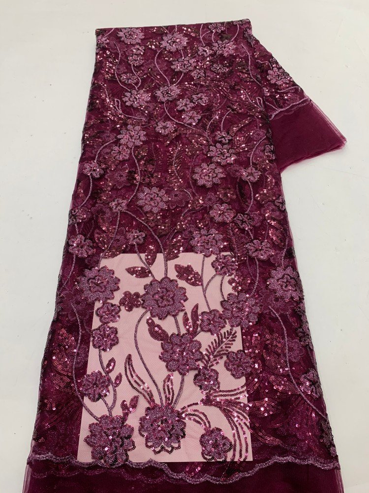 2025 new 5 yards in stock good price purple flower plant embroidered embroidery sesquin fabrics for women dress S31119A