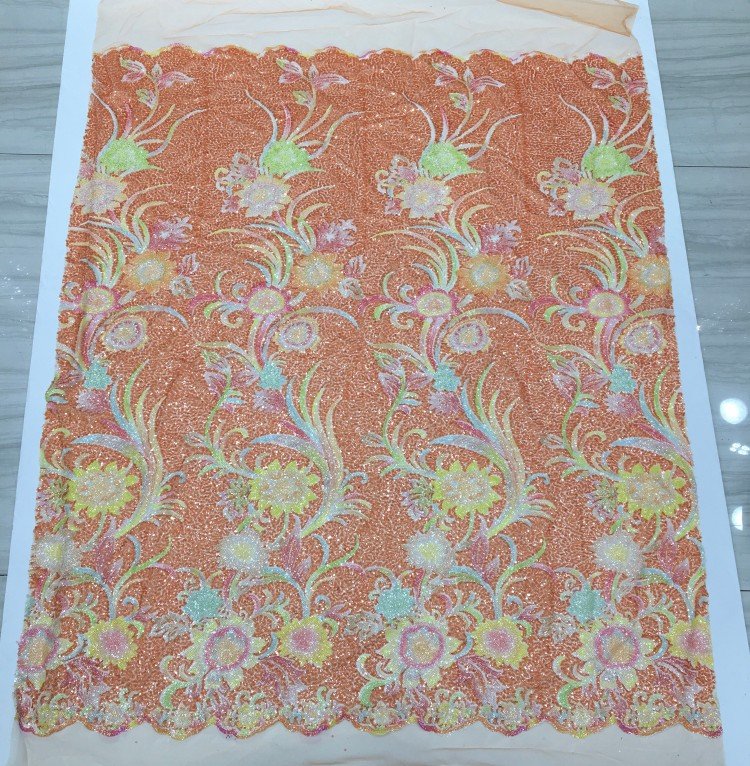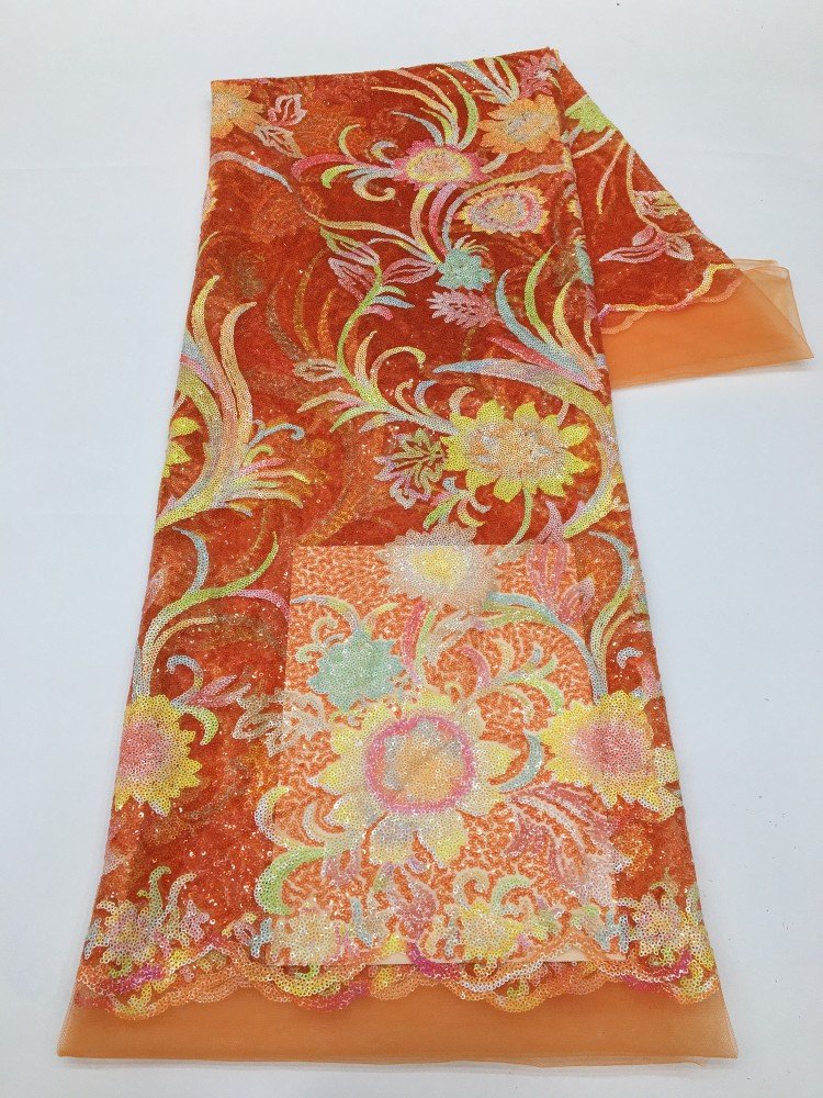 2025 Nigerian Lace Fabric sequin flower lace sequins fabrics R30434
