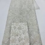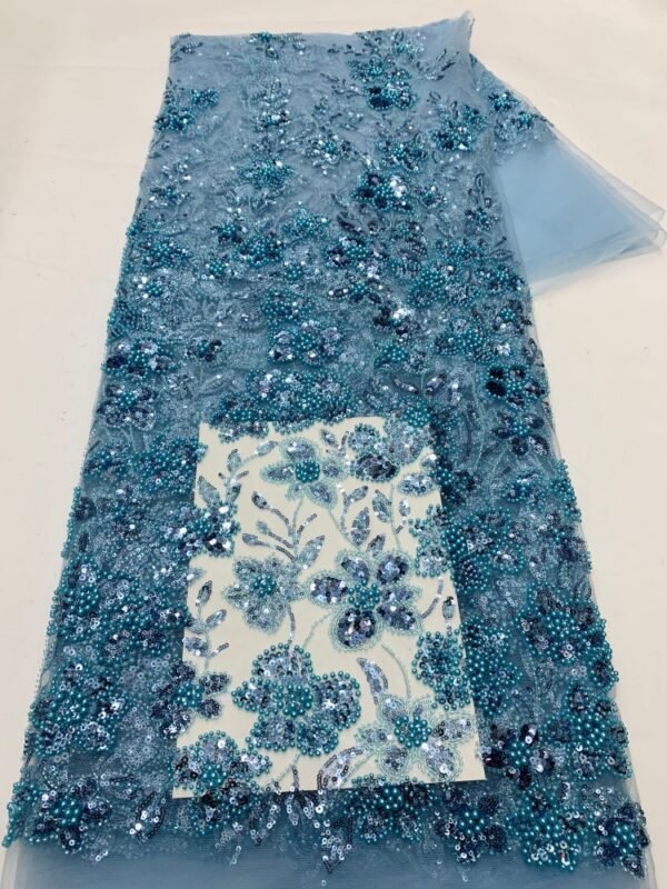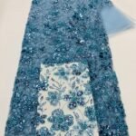 Stylish mint green mesh fabric covered with oversized sequins, ideal for luxury gowns, dresses, and event decorations.