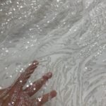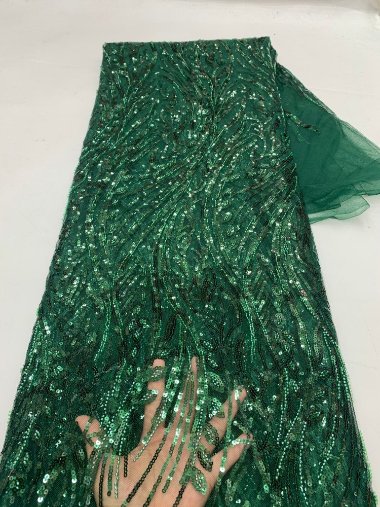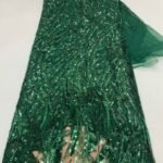 Stylish mint green mesh fabric covered with oversized sequins, ideal for luxury gowns, dresses, and event decorations.