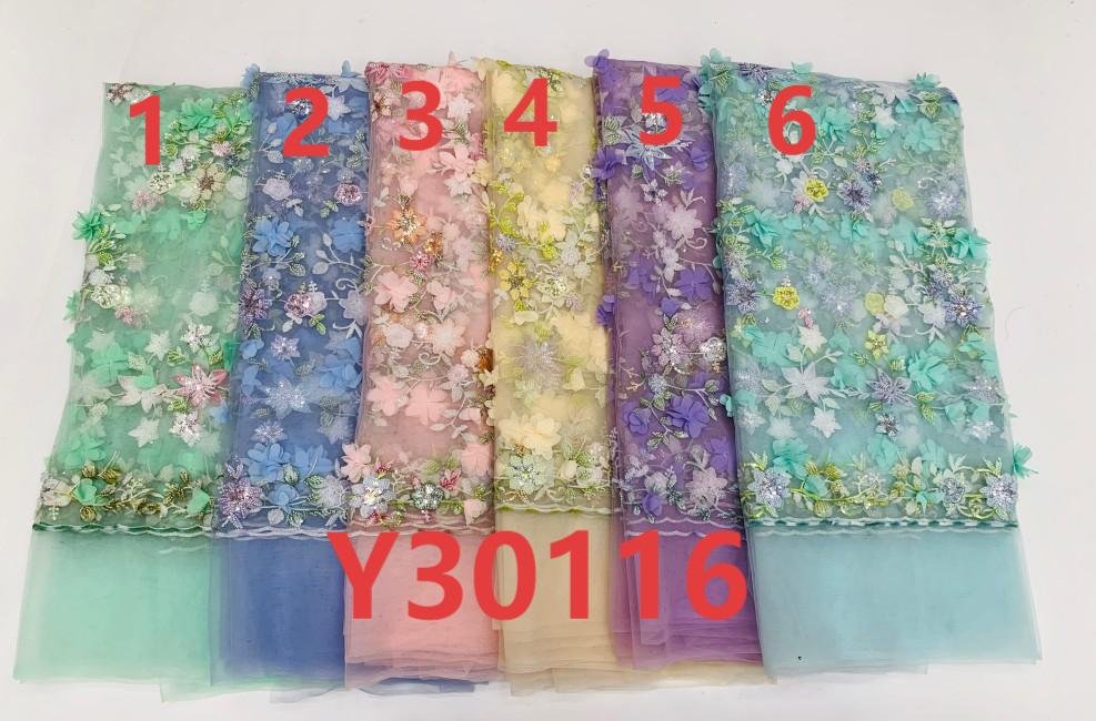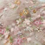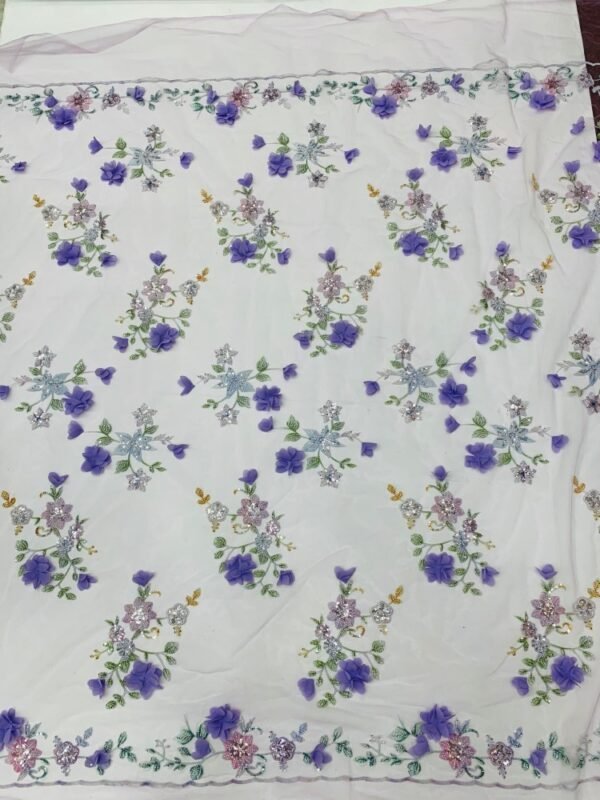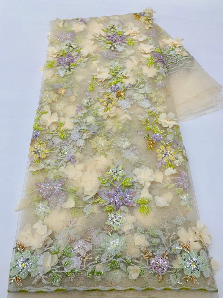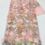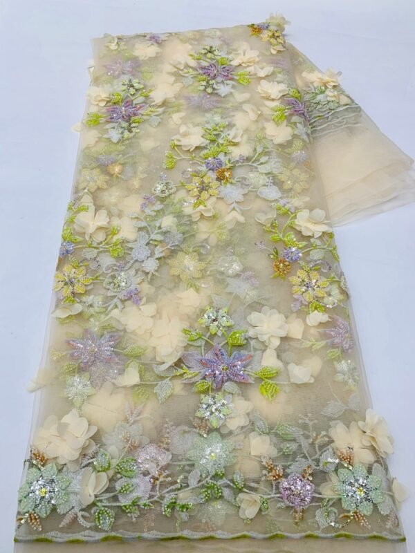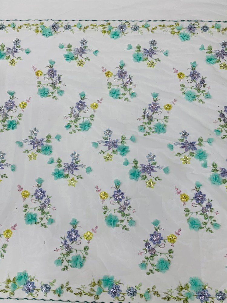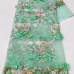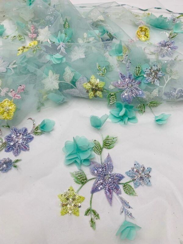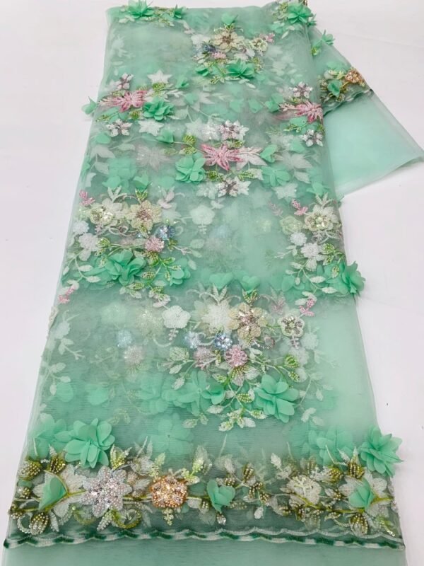 Stylish mint green mesh fabric covered with oversized sequins, ideal for luxury gowns, dresses, and event decorations.