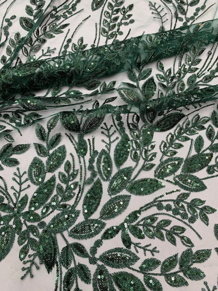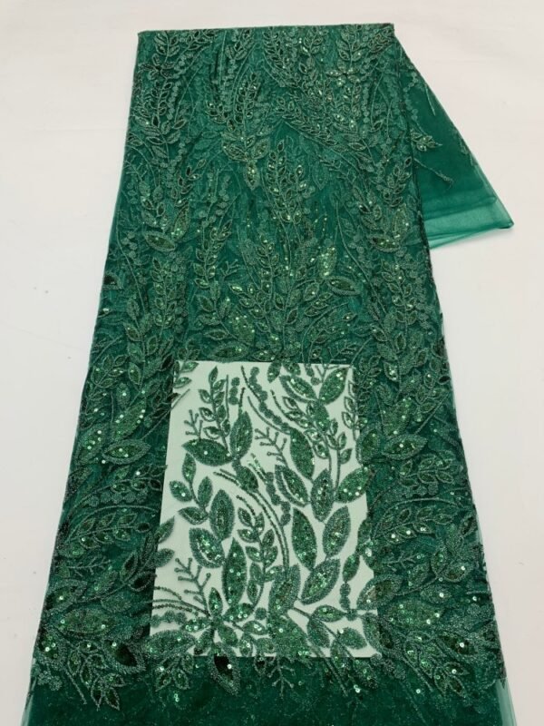 Stylish mint green mesh fabric covered with oversized sequins, ideal for luxury gowns, dresses, and event decorations.